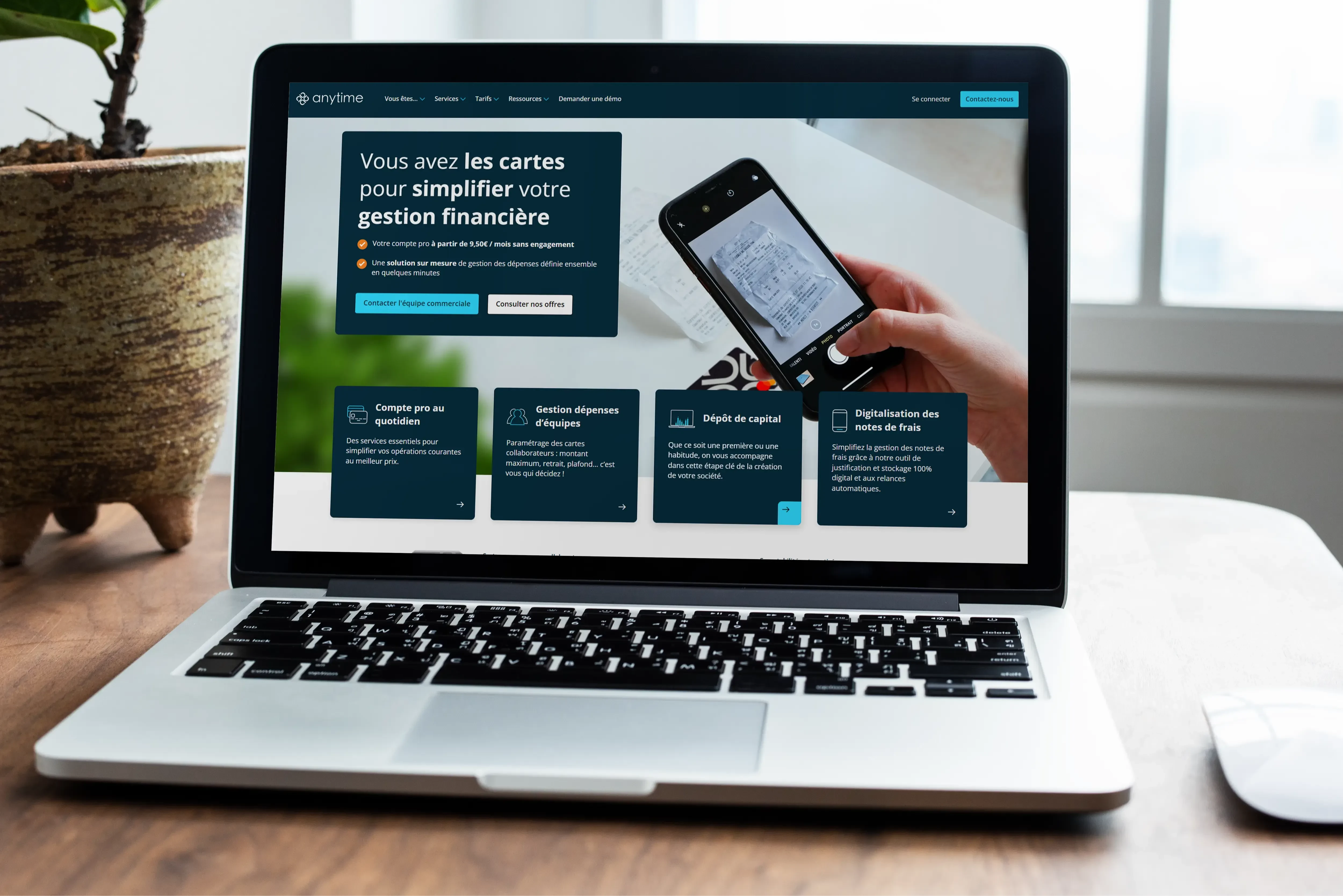 Réalisation du site vitrine d’Anytime, an Orange Bank company, compte pro intelligent pour entreprises, professionnels, associations et indépendants.